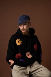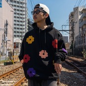 ChahChah チャーチャー CC"FULL BLOOM" HAND EMBROIDERY HOODIE - BLACK -