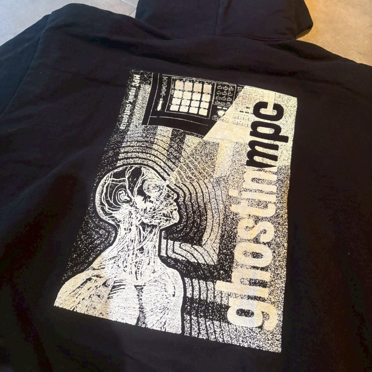 10オンスの裏パイル生地のボディにフロントには単色でRSBのロゴ、バックにはghostinmpcのグラフィックが入る豪華な1着です!